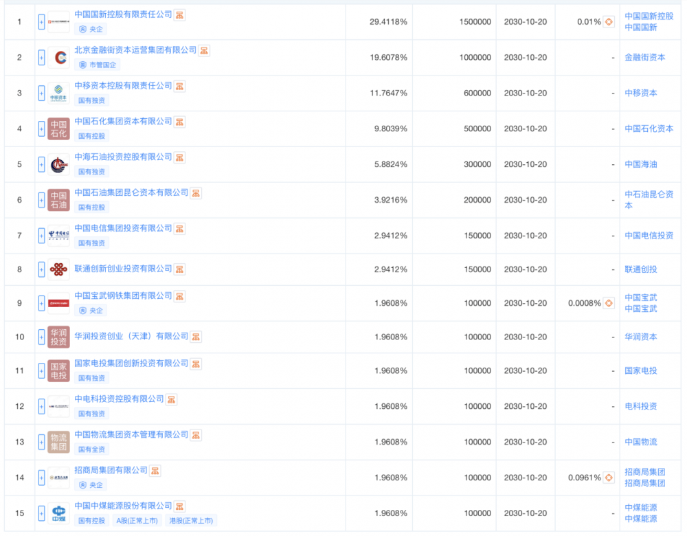 出資結(jié)構(gòu)透露出鮮明行業(yè)導(dǎo)向:中國國新作為第一大股東出資150億元,而中國石化、中國海油、中國石油分別以9.80%、5.88%、3.92%的持股比例位列重要出資方?;?、能源領(lǐng)域央企的集體重倉,折射出傳統(tǒng)產(chǎn)業(yè)巨頭向新興賽道轉(zhuǎn)型的迫切需求。