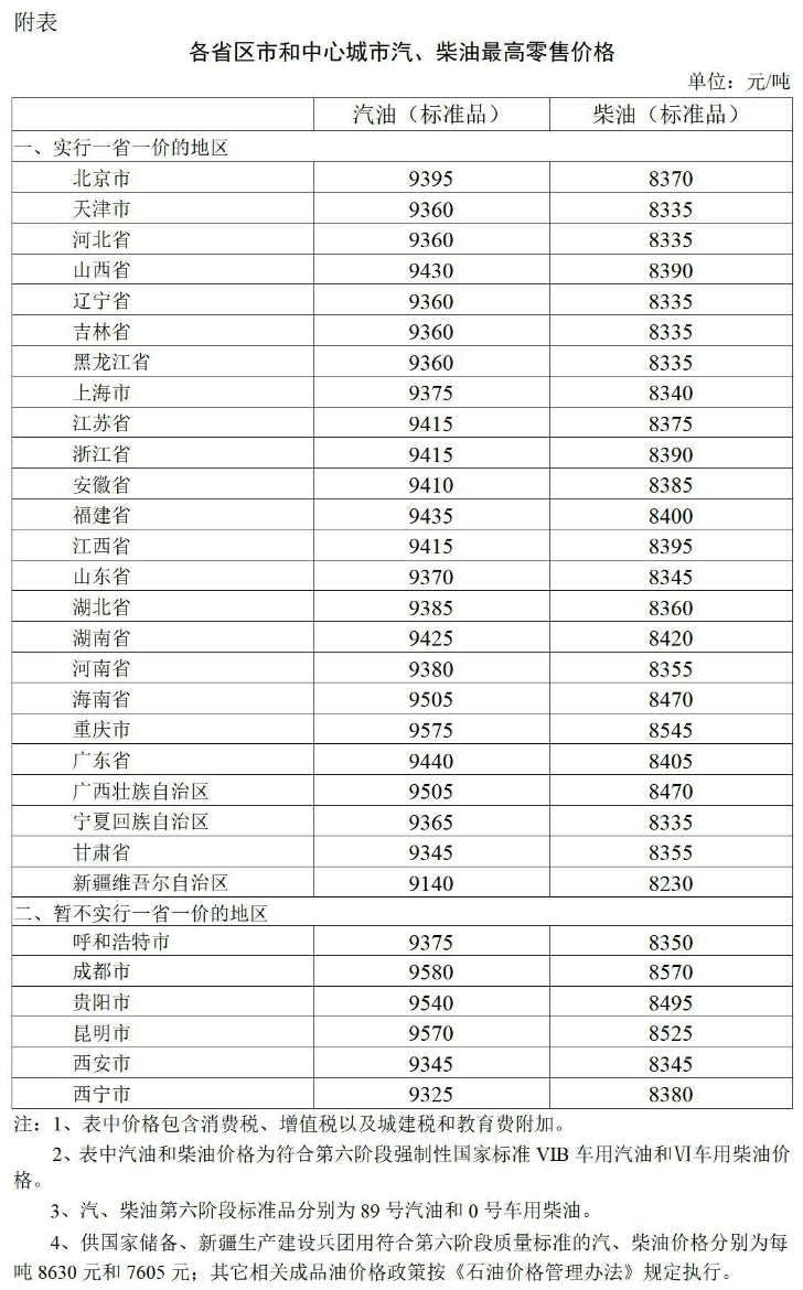 據(jù)國家發(fā)改委12月19日消息,根據(jù)近期國際市場油價變化情況,按照現(xiàn)行成品油價格形成機(jī)制,自2023年12月19日24時起,國內(nèi)汽、柴油價格(標(biāo)準(zhǔn)品,下同)每噸分別降低415元、400元。調(diào)整后,各省(區(qū)、市)和中心城市汽、柴油最高零售價格見附表。相關(guān)價格聯(lián)動及補(bǔ)貼政策按現(xiàn)行規(guī)定執(zhí)行。