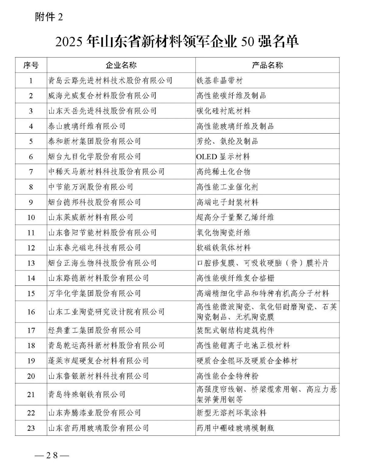 附件:2.2025年山東省新材料領(lǐng)軍企業(yè)50強(qiáng)名單